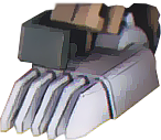 The Bear Fighter's four sets of claws. As a bear, this Zoid specializes in melee combat just as much as bombardment. In fact, its claws are said to be so powerful that it can knock out other Zoids of its class, such as the Black Rhimos, in a single hit.