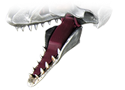 The Megaraptor's jaws are long and lined with sharp teeth. Not much is actually mentioned about them, and it's not a weapon they're depicted using often, so their effectiveness is unknown.