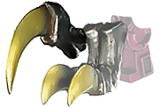 The Heat Hacking Claws refer to the hands. These claws are massive, and thick. With the excellent reach of a Megaraptor they have a lot of potential in close-range combat. Though nothing explicitly states so, it wouldn't be unreasonable to assume all of the Heat weaponry functions like the Spikes.