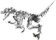 Like all Bio Zoids, the Bio Megaraptor is equipped with a Bio Zoid Core. In the model-verse, this new unique type of core is poorly understood, with virtually no information. Zoids Genesis had their own unique take, linking the pilot to the Zoid through a specialized suit, as the pilot resided inside of the Bio Core. This role could also be taken over by specialized robots used by the Digald Regime, which contained human souls that were forced to obey all orders after being sealed inside the robots.