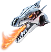The jaws of the Bio Raptor, lined with small teeth. The 'heat' weapons aren't often depicted in the official media, and because all Bio Zoids use a "theme" for weapon names, it's unclear if those themes are literal (i.e. being actual thermal weapons) or purely thematic.