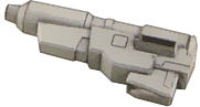 Not given a distinctive name, Tobizaru also has a generic cannon that replaces the dart gun. This weapon is depicted when Tobizaru is fused with Eika, though there's nothing stating it to be explicitly tied to the transformation, as there's just not enough media depicting Tobizaru either way. That being said, the cannon's also designed to fold in the middle, allowing the front half to fold backwards over the top for a more compact form.