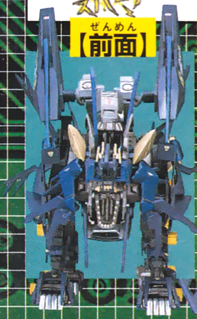 This was the winning sketch submitted to CoroCoro by Yamadori Ryowa. It shows an assortment of weapons and stated the wolf's speed as being 320 km/h.