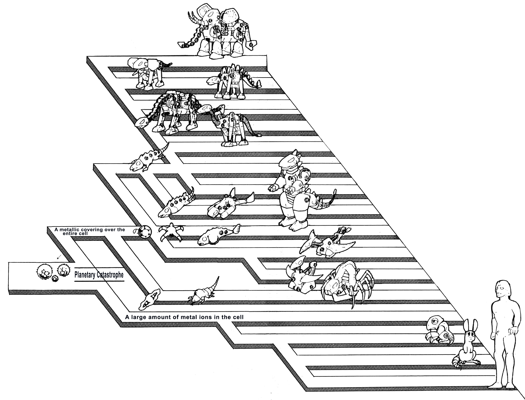 Grown Bio-Machine Zoids , whose bodies are composed of metallic matter, have evolved over hundreds of millions of years.