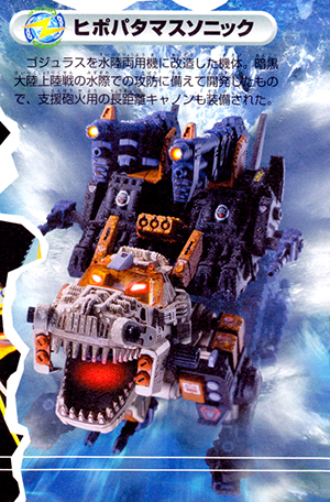 An experimental carnivorous dinosaur-type large-scale Zoid produced by the Republican Army. In close-range combat, its power is comparable to that of the Geno Saurer.