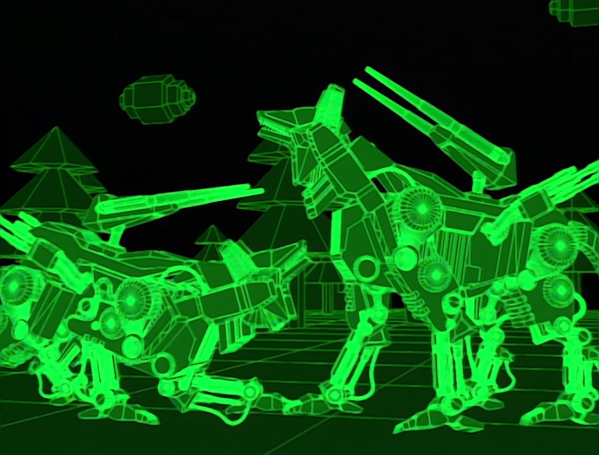 Though not technically a real Zoid, these simulated command wolves appeared in a videogame where pilots could enter fake cockpits to fight it out in a virtual reality landscape. Anyone could join, and join in at any point during the battle, even if the game had already begun.