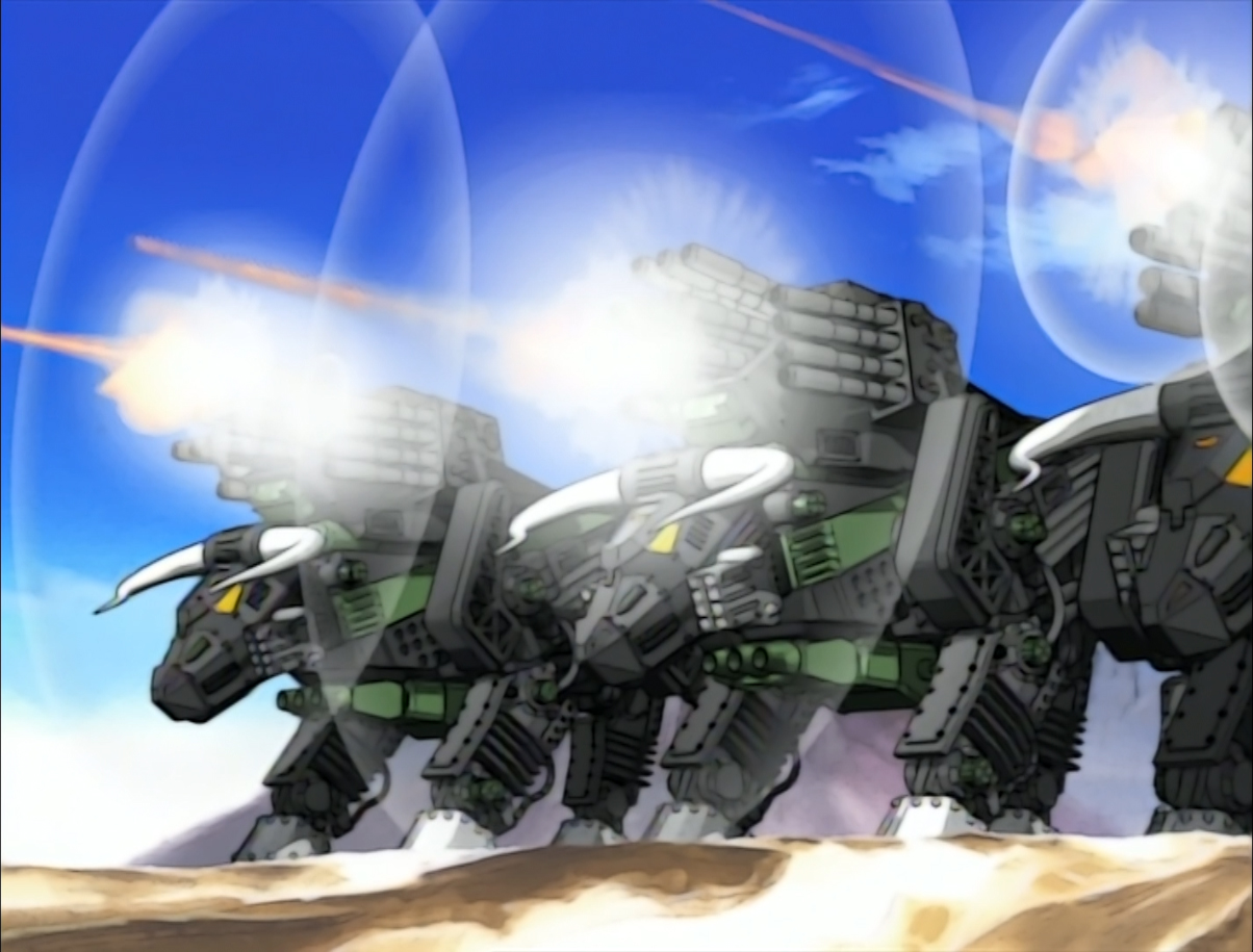 Dibison was a seemingly fitting choice for Leena's combat style. Strangely, the Zoid had very little success on the battlefield and this may be due to the pilot. It landed few shots and was actually taken out easily in most fights. The only battle that the Zoid won was in a city where it had the benefit of surprise. Regrettably the Dibison was destroyed by the Elephander and later replaced by the Gun Sniper Rinon Spec. After the Dibison LS was shot down, its model was later used for the Dibisons that pulled Mary Champ's transporter.