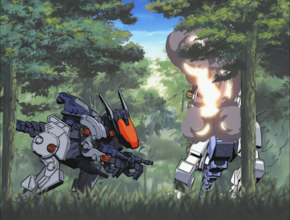 Rinon's Gun Sniper has so many guns, and she rarely uses them individually, so we'll be lumping them into this one category. The Weasel Unit Total Assault involves firing off just about every weapon the Gun Sniper has. The advanced targeting system allows her Zoid to target each individual enemy, if she chooses to, allowing for precision fire to down all targets without harming others. Of course, she usually just shoots in their general direction. When the attack is about to fire, the Gun Sniper's antennas flip upwards on the head.