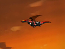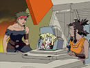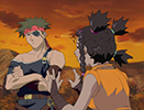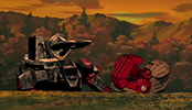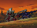 As they stop the rest, the group stumbles upon Rudolph and hear his story about being lost in the woods. He insists that he's with his "parents" (Rosso and Viola), but the group offers to let him stay for a meal. That evening, Raven shows up in an entirely new Zoid. A terrifying machine equipped with a charged particle cannon. Our heroes have no choice but to run for it, while Rosso and Viola try to hold off the terrifying Geno Saurer.