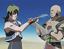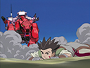 The group has fallen prey to one of the most aggressive bandits they've encountered so far, Stinger. Utilizing poison to keep the group under control, he intends to wait for the vortex of light to disappear so that he can acquire the group's Organoid. He isn't alone, however. He's brought Metternich and his subordinates with him, as well as a heavily-armed Saber Tiger.