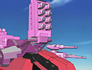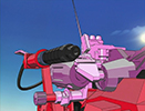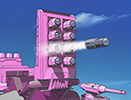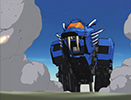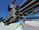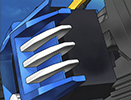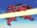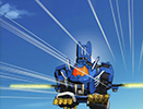 Stinger's custom Saber Tiger is equipped with 8-Shot Launch Pods that reload as it fires and its fighting strength and capacity are 20% higher than the standard Saber Tiger. The two single-barrelled guns fire paralyzing gas like his Guysack.