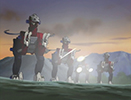 The next leg of our group's journey is a complicated one. The roads are all blocked off by imperial soldiers who are performing checks along every route, hoping to find the alleged imposter, Rudolph. Bang, Irvine, and Rudolph make the decision to travel over the mountains while Moonbay and Fine try to smuggle the Zoids through the checkpoints under the guise of needing to get to a wedding.
