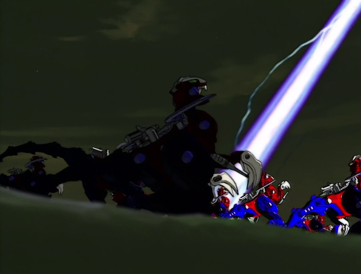 After the group collectively decides that it'd be best to wait for Rudolph's coronation before making any decisions, Bang and Fine sneak away in the night. They find their way to ancient ruins that've fallen into Prozen's hands, where he recognizes Fine as an Ancient Zoidian, noting that her presence is awakening the Death Saurer. As the monster breaks out of its containment they flee the ruins, aware of an all new threat.