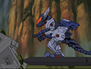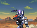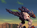 Dorset's Gun Sniper is cloaked by optical stealth that creates the image of a rock formation around it, allowing it to hide even larger Zoids like a Gustav with trailer.