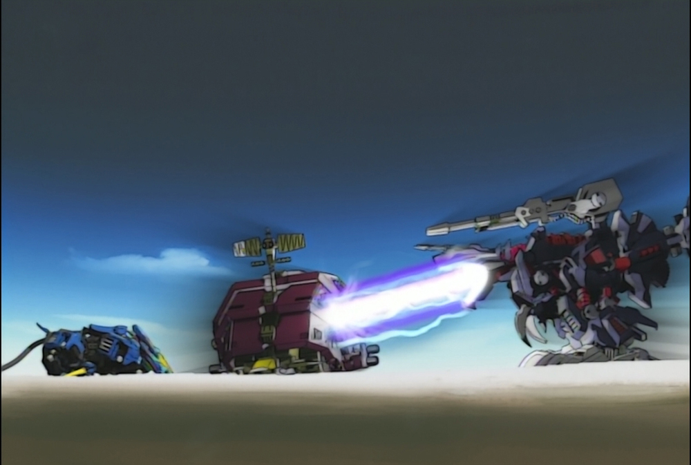 In this episode, Dr. D upgraded the Blade Liger's energy shield, explaining that its particle neutralization worked because of minute electrical pulses generated by the blades. Though this works, the shield still fails when Raven combines the Charged Particle Gun with the Pulse Laser Guns.