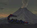With the Death Stinger approaching New Helic City both armies are making preparations. For evacuation as well as for battle. Their first plan to submerge the sea scorpion into magma is mocked by Hiltz himself, when he chooses to use those magma trails as a highway for travel. Ultimately the monster reaches New Helic City, and in spite of their best efforts the capital falls. A new plan is established to retreat to a secret base, while Bang slowly catches up after his own fierce battle against the Psycho Geno Saurer.