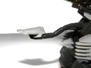 The boosters on the back are on a single hinge that allows them to tilt towards the air. The same applies to the white armor cover over it.