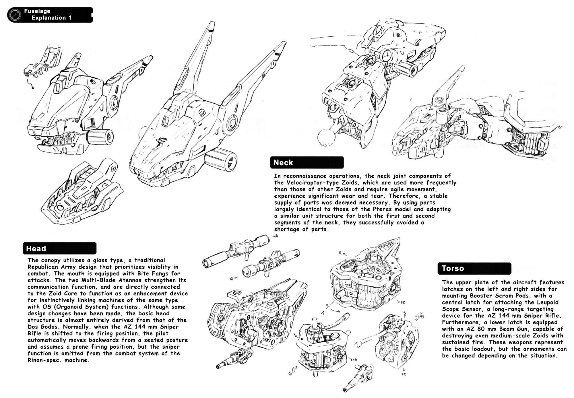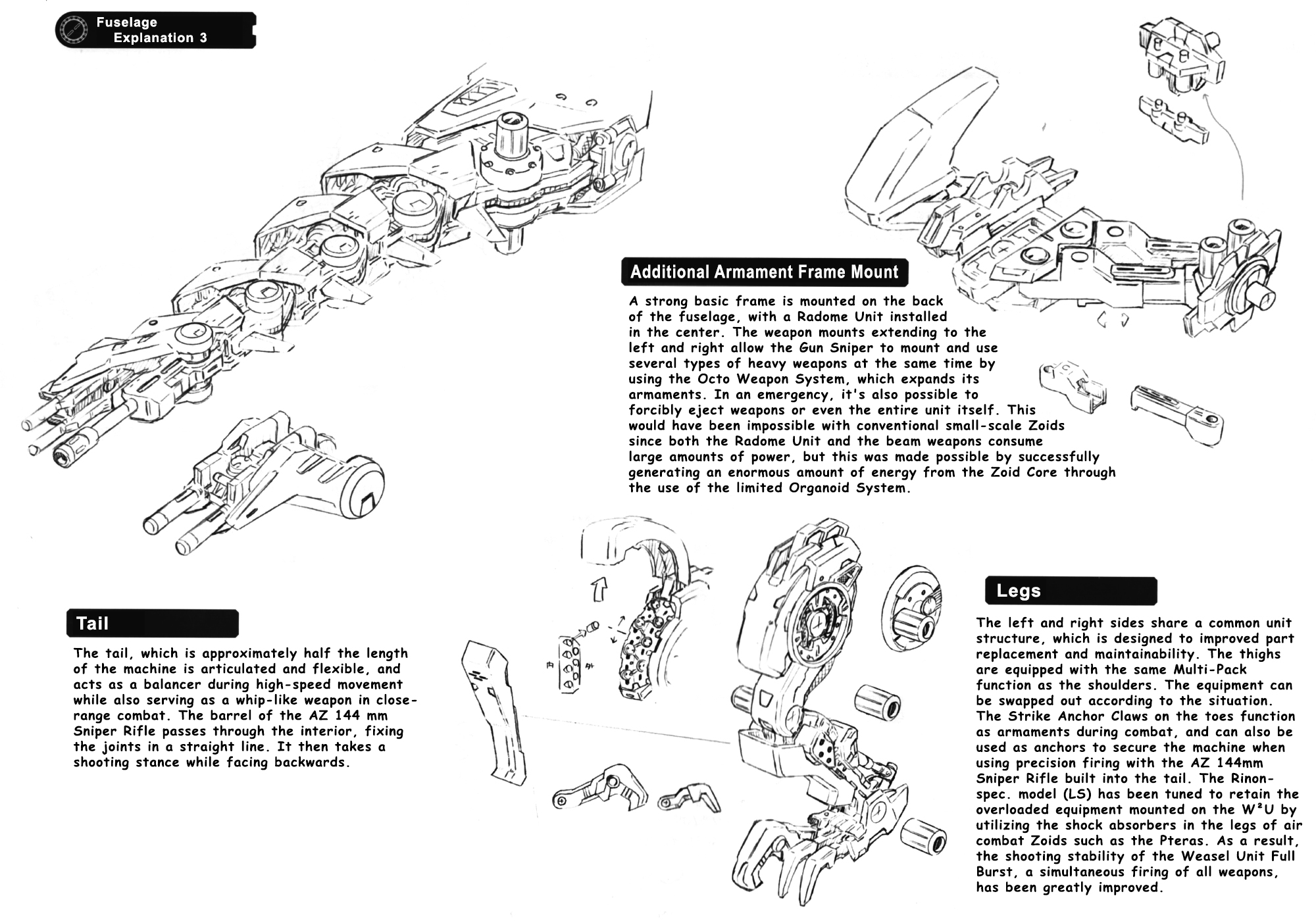 Located among the lightweight Zoids, not only was the Gun Sniper affordable due to how easily manufactured it was, despite being an excellent quality machine, but it also had a wide scope of customisation options. Because of this, it and the other Velociraptor-type Zoid, the Rev Raptor - which was of a similar class and style, had many regular users, from the general public to Zoid Warriors. Thus they were popular enough to have their own specialist magazines published.