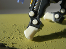 The legs have a good range of articulation too. They can rotate at the base, are on the same foldable arm attachment, and are articulated at the knee and heel. The pipe on the knee really complicates the movement, and so does the one on the back of the leg.