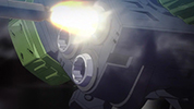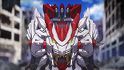 Leo: "Evolution Unleash! Evo Blast!" Luc: "Idiot! As if you could withstand the shock of a Wild Blast without a B-Proof Suit! Nine Burst Cannon!" Leo: "Heheh, your bullets look like they're standing still!" Luc: "How is he okay? His cockpit should be under tremendous shock!" Leo: "Beast Of Claw... Break!" Luc: (after being defeated) "So those are the results of Doctor Bowman's research... No wonder the higher-ups are so obsessed." |