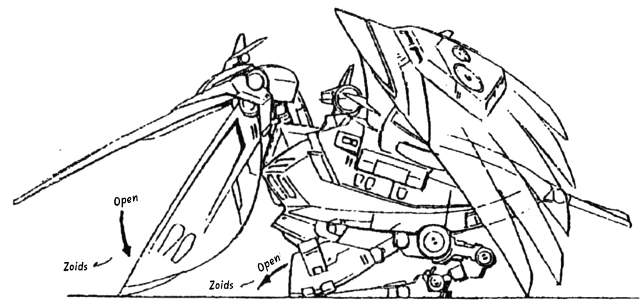 The sides of its body open up and Zoid hangars appear, like a collection case. It has a sortie hatch for large-scale Zoids on its underside.