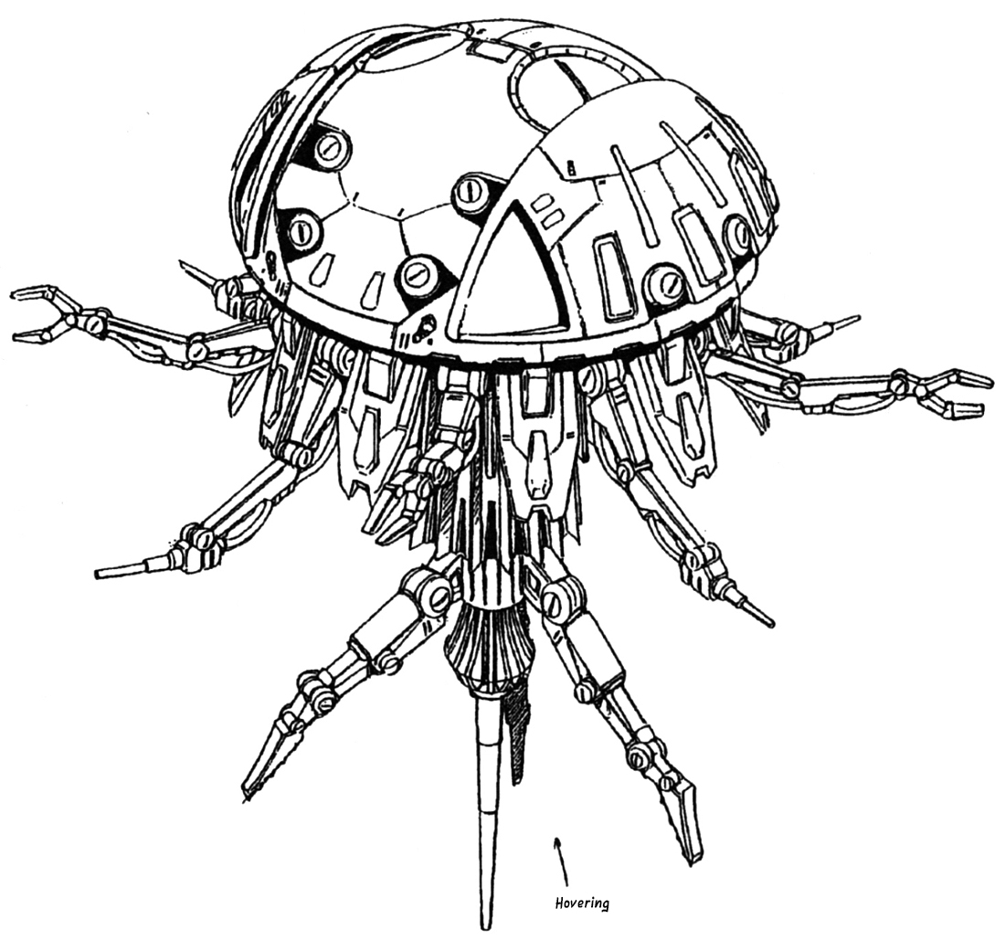 A small-scale jellyfish-type dolly that hovers through the air. When it lands, its underside pole mast is stored inside its body.