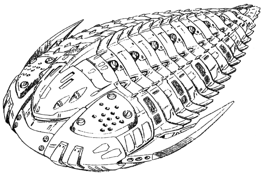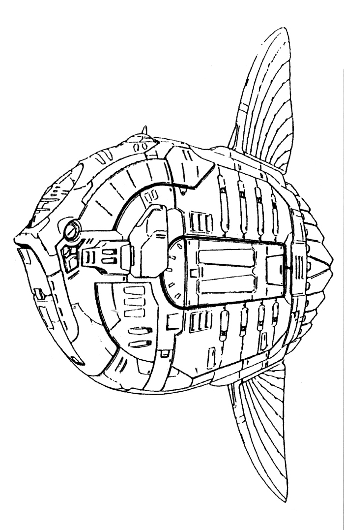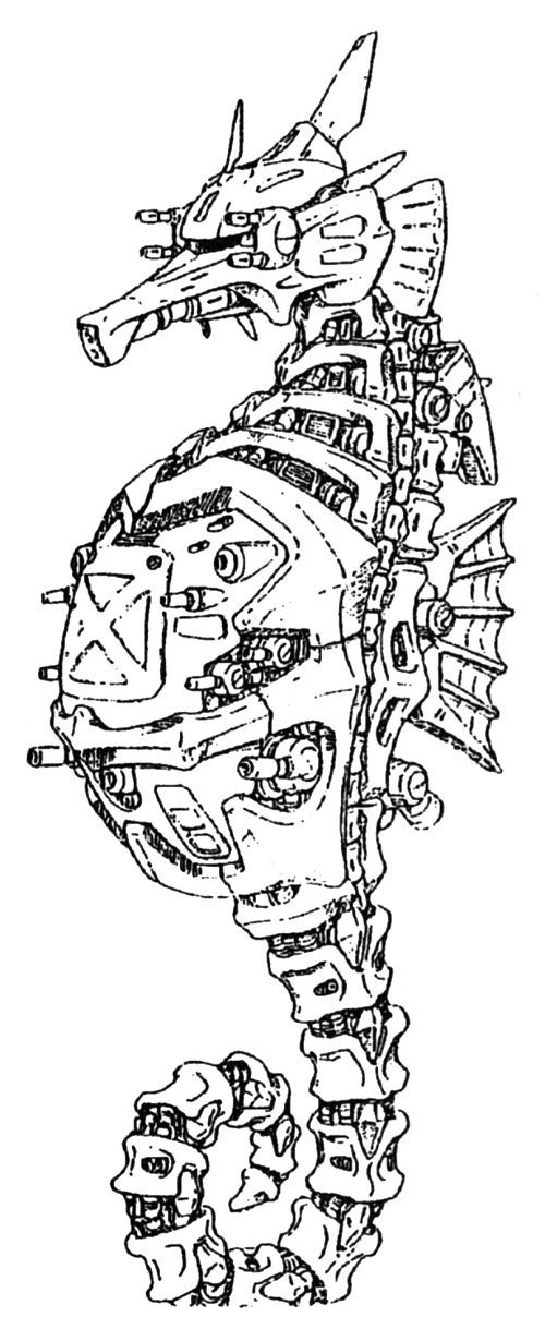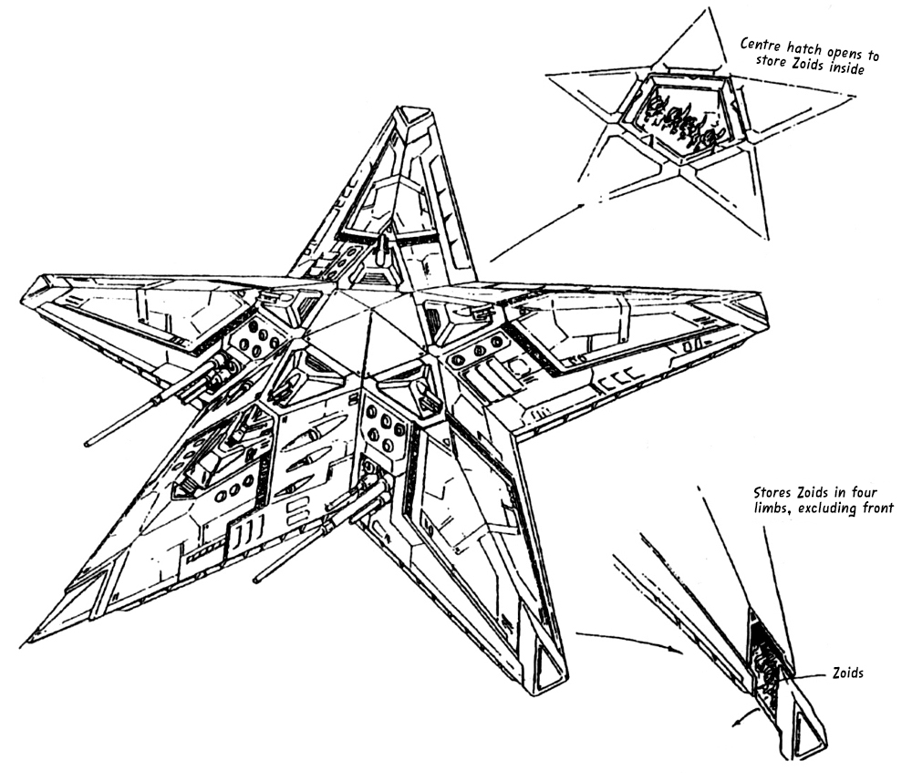 Drawn as an escort vessel for a leafy sea dragon-type carrier. Appears in the card game as an Imperial Zoid carrier.
