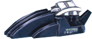 This weapon is set between the laser swords of the back, and face behind the Grounchar to provide some additional defense.