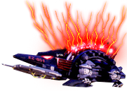 When the Ray Force stumbled upon the Eisen Dragoons in the process of slaughtering Guylos defense forces, they decided to stay in the area, against warnings from Wolff Muroa. Almost immediately they were beset by jamming waves that rendered their Zoids inoperable, and after that, they became cannon fodder to the Dragoon's countless small-scale Zoids. Grounchars were responsible for these Jamming Waves, and they almost sealed the fate of the Ray Force, had the Republic not air-dropped Gunblusters into the area. Their specialized E-Shields were able to cut the effectiveness of the jamming waves down, giving the Ray Force enough of a distraction to reorganize in spite of the dire circumstances.