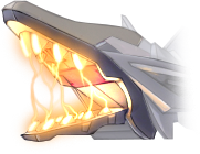 Like many other canids, the Mirage Fox is able to charge its teeth with electrical energy. This is used to deliver a fierce bite to the enemy. However, the weapon doesn't see use in the series (with a charge) for us to be able to determine its effects or imagery. This image is referenced from the Konig Wolf.