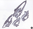 The Mirage Fox, like most Zoids released in the Original line, is designed to have several different variations, all based on the weapons and armor that were equipped. The kits came with the pieces to make all such variations. They included the Mirage Fox Type A (with the Wing Blades), Mirage Fox Type B (with the Laser Vulcan Gun), and the Cold District type (with basic Shadow Fox armor).