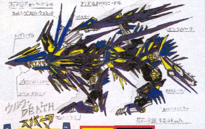 Wolf Death Spark is a custom model kit from CoroCoro. In the December 2001 issue, the magazine ran a König Wolf Customization Idea Contest, where readers could send in sketches of their ideal König Wolf custom. The winner would have their idea recreated as a one-off model kit custom, with the winner, the Wolf Death Spark, announced in February 2002.  [1]
