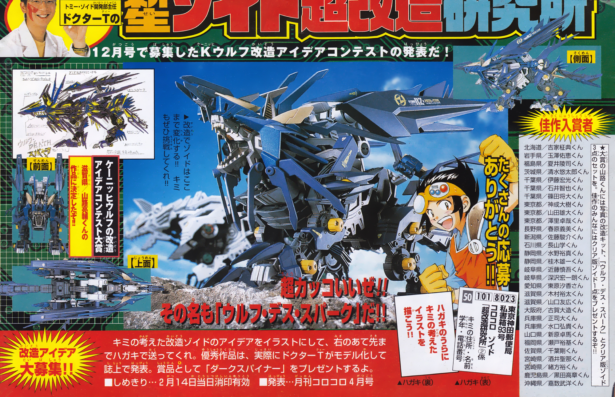 This was the winning sketch submitted to CoroCoro by Yamadori Ryowa. It shows an assortment of weapons and stated the wolf's speed as being 320 km/h.