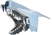 This piece of equipment seems to indicate the two long panels coming off of the Wolf's head at the back. It's a generic part shape, but it appears to maybe be the throat mane pieces of a Jager.