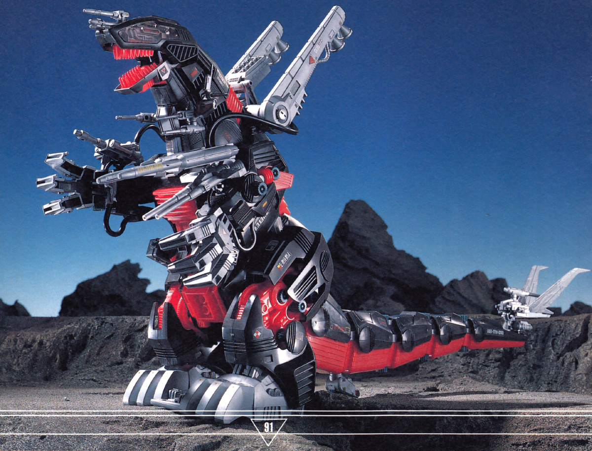 ⚫ Height: 4.0 m ⚫ Weight: 12.0 tons ⚫ Maximum Speed: 175 km/h ⚫ Price: 3800 Yen An all-rounder-type, the strongest Zoid in the Zenebas Empire army's 24 Force. |