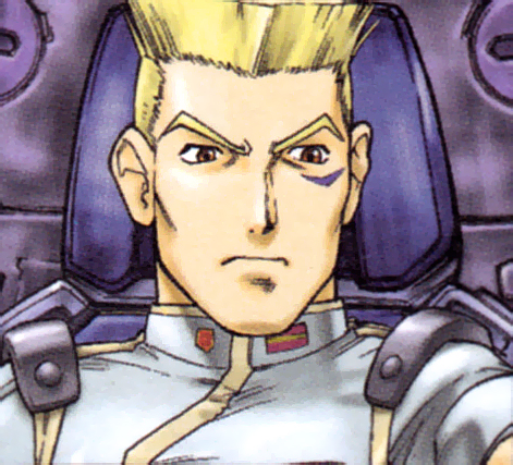 Special Manoeuvre Division High-Speed Combat Force ⚫ Zoid(s): Command Wolf A captain in the Army. The sole survivor of the Independent 2nd High-Speed Combat Battalion who prevented the Death Saurer revival project. Brought data on the Organoid System back to headquarters. |