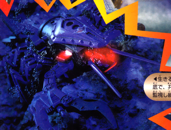 At the bottom of the demonic sea, where there should be no signs of life, a Zoid was keeping watch over the movements of the Republican Fleet.