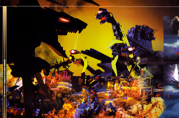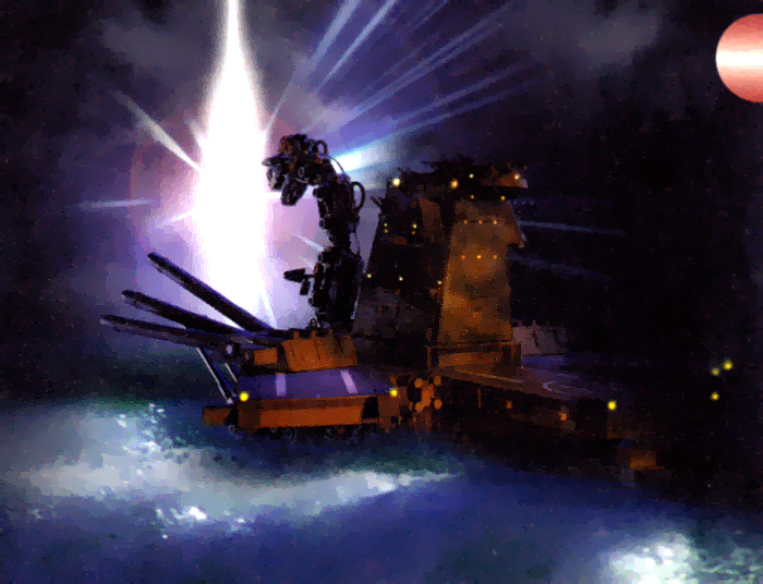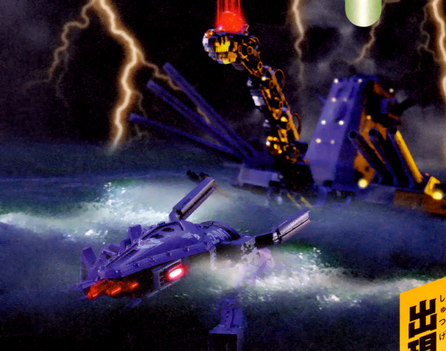 The mysterious Imperial crayfish-type Zoid slowly began to move through the plasma storm, as if guiding the remaining Republican fleet.