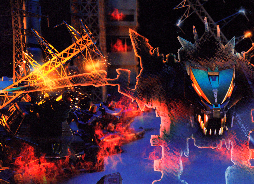 The flames rising from the wreckage of the two machines shook the atmosphere. There, for an instant, the shadow of a lion Zoid appeared, and then disappeared back into the darkness.