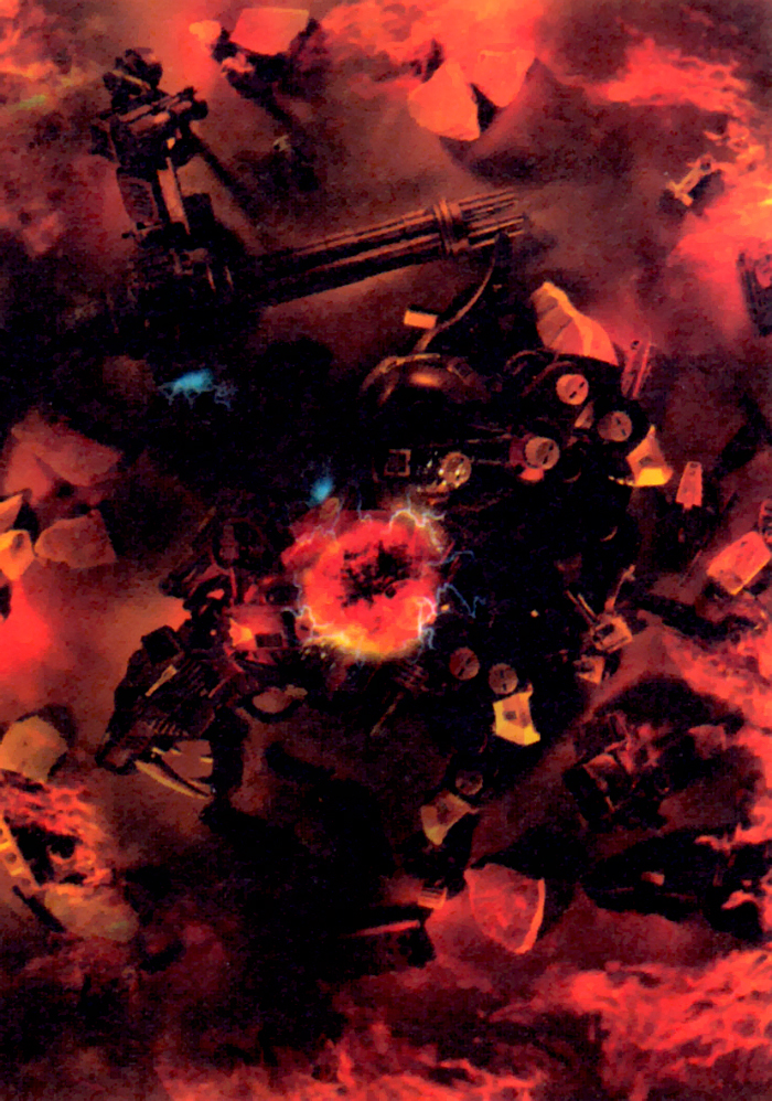The moment Schwarz stepped forward once again, the distortion in space in front of him let out a violent discharge. It was the Electron Driver, the X's most powerful weapon, an ultra-high voltage beam cannon. This beam, which displayed its greatest power at close range, easily penetrated the Zoid Core of Schwarz's machine.