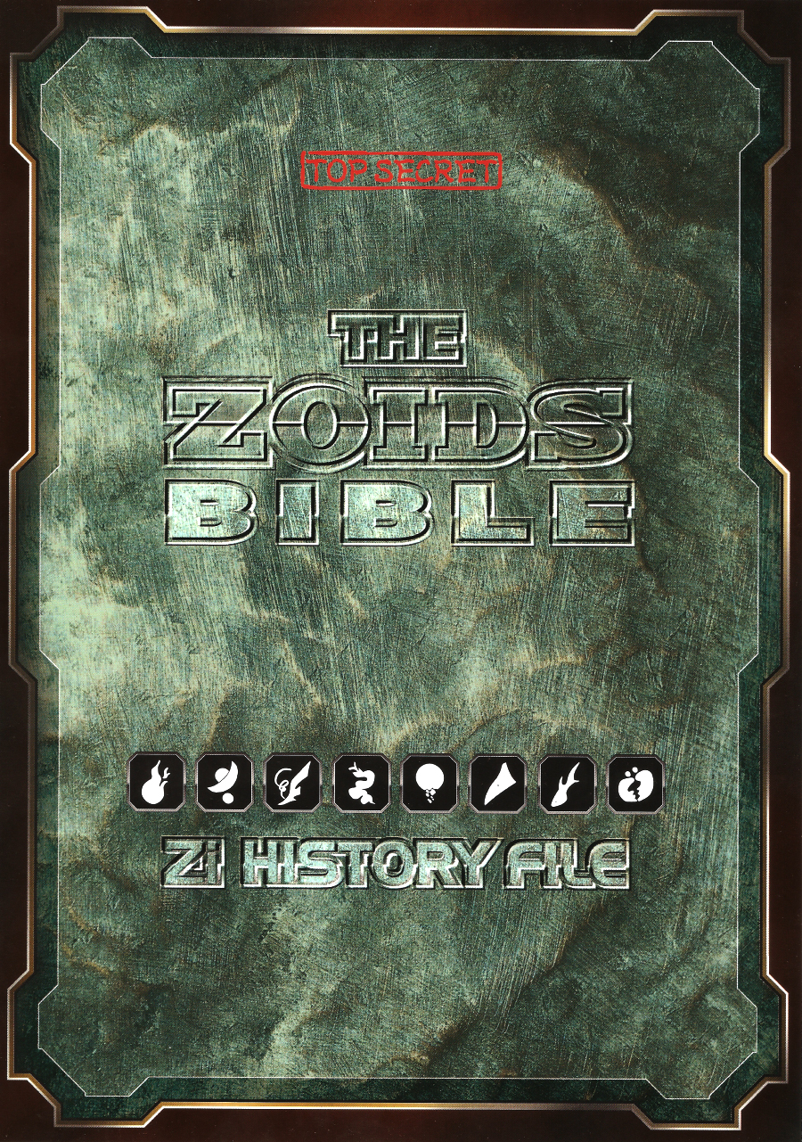 The Zoids Bible isn't actually a book, but a series of pages that came in a set, unbound, in the Zoid Core Box. It was later rereleased in the Zoids graphics with slight modifications.