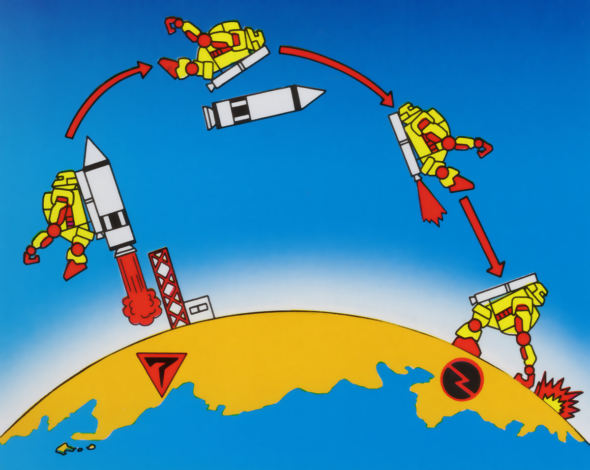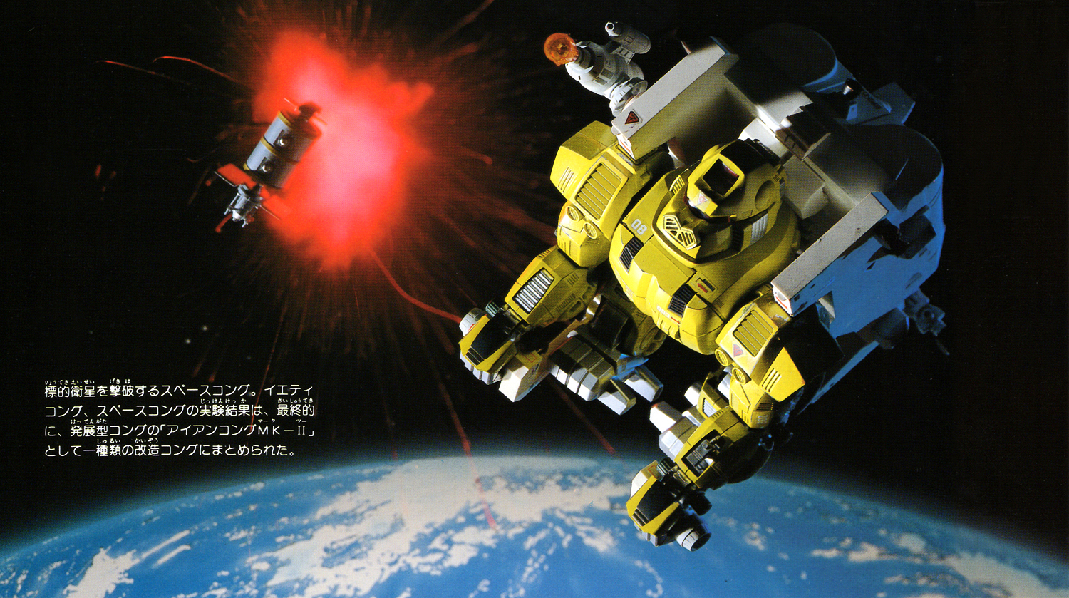 Space Kong destroyed the target satellite. The experimental results of the Yeti Kong and Space Kong were ultimately combined into one advanced type of Kong, the Iron Kong MK-II.