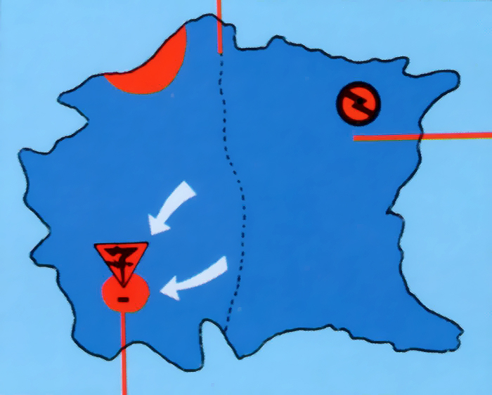 The roads of the Imperial capital were buried under the rubble of collapsed buildings. The large Imperial Zoid facing the Republican forces, the Redhorn, was unable to move. In response, the Republic Assault Team, composed of smaller Zoids, climbed over the piles of rubble and took down enemy positions one after another. The Godos were used to spot the enemy while Cannontortoises fired their assaults and Guysacks mowed down fleeing enemy soldiers.