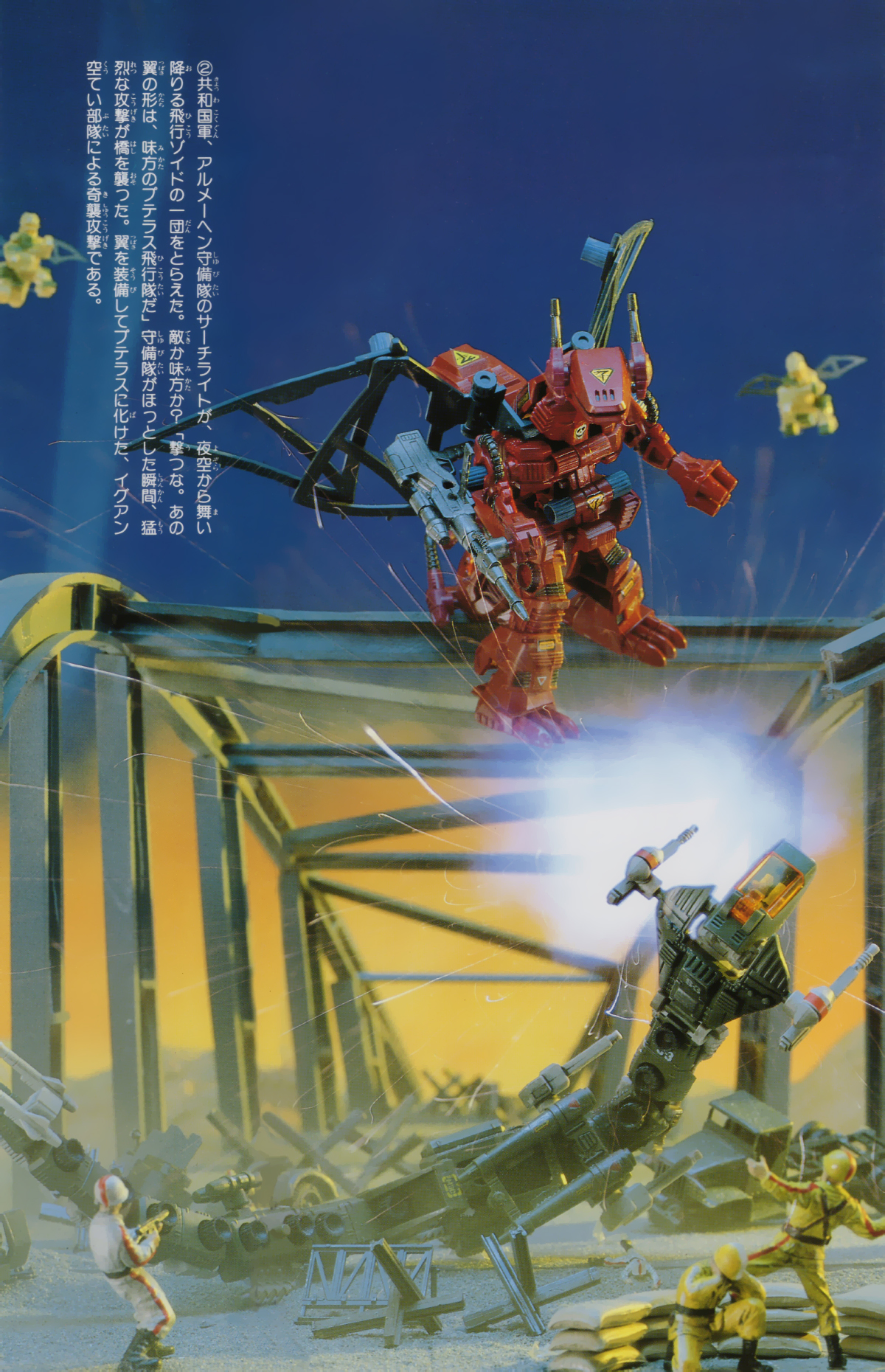 The searchlights of the Republican Army's Almehen garrison spotted a group of flying Zoids descending from the night sky. Were they friends, or foes?