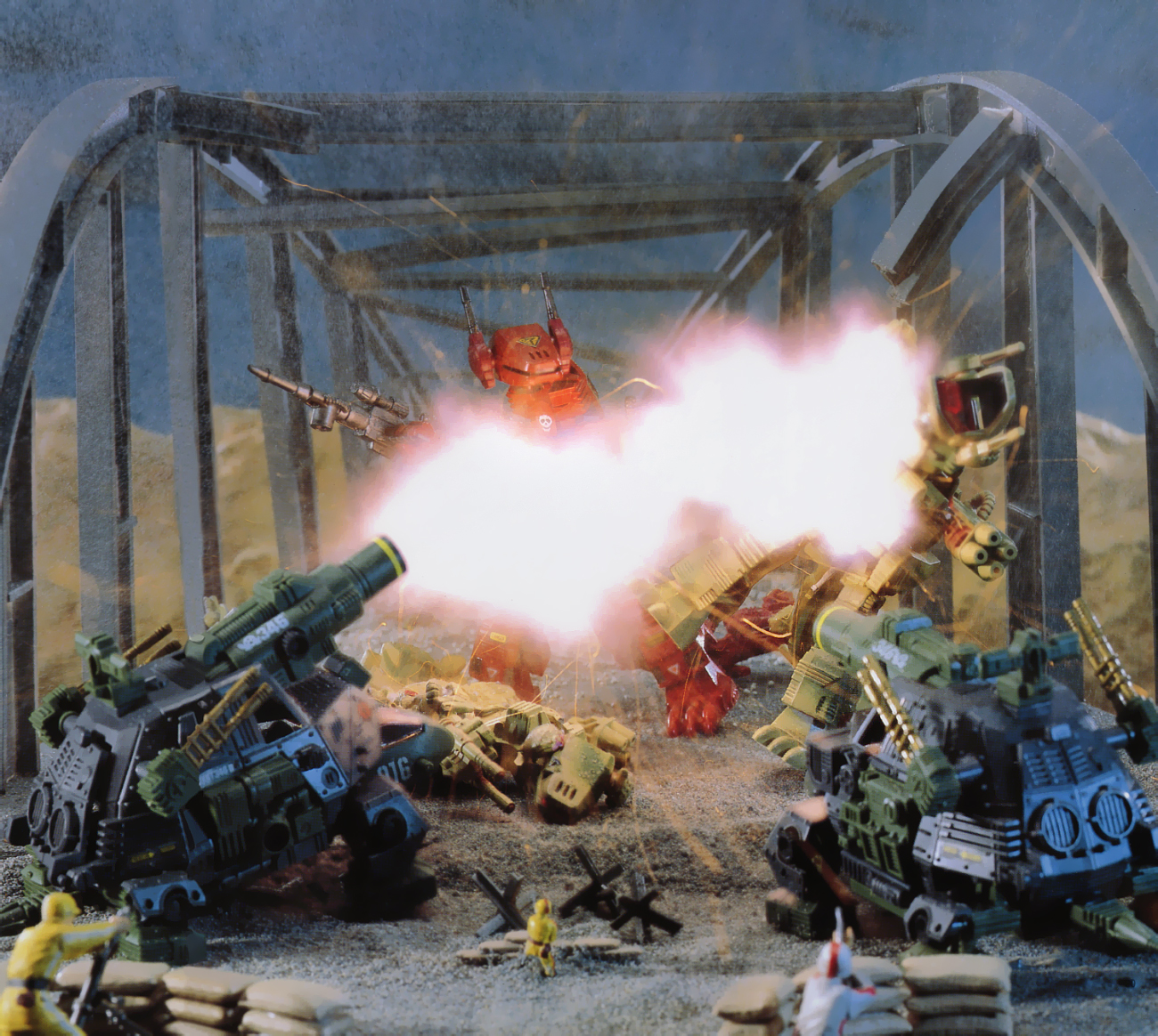 The surprise attack was successful, and the bridge fell into the hands of the Iguan forces. Lt. Col. Frost, commander of the airborne forces who was piloting a red Iguan positioned his subordinates on both sides of the bridge.