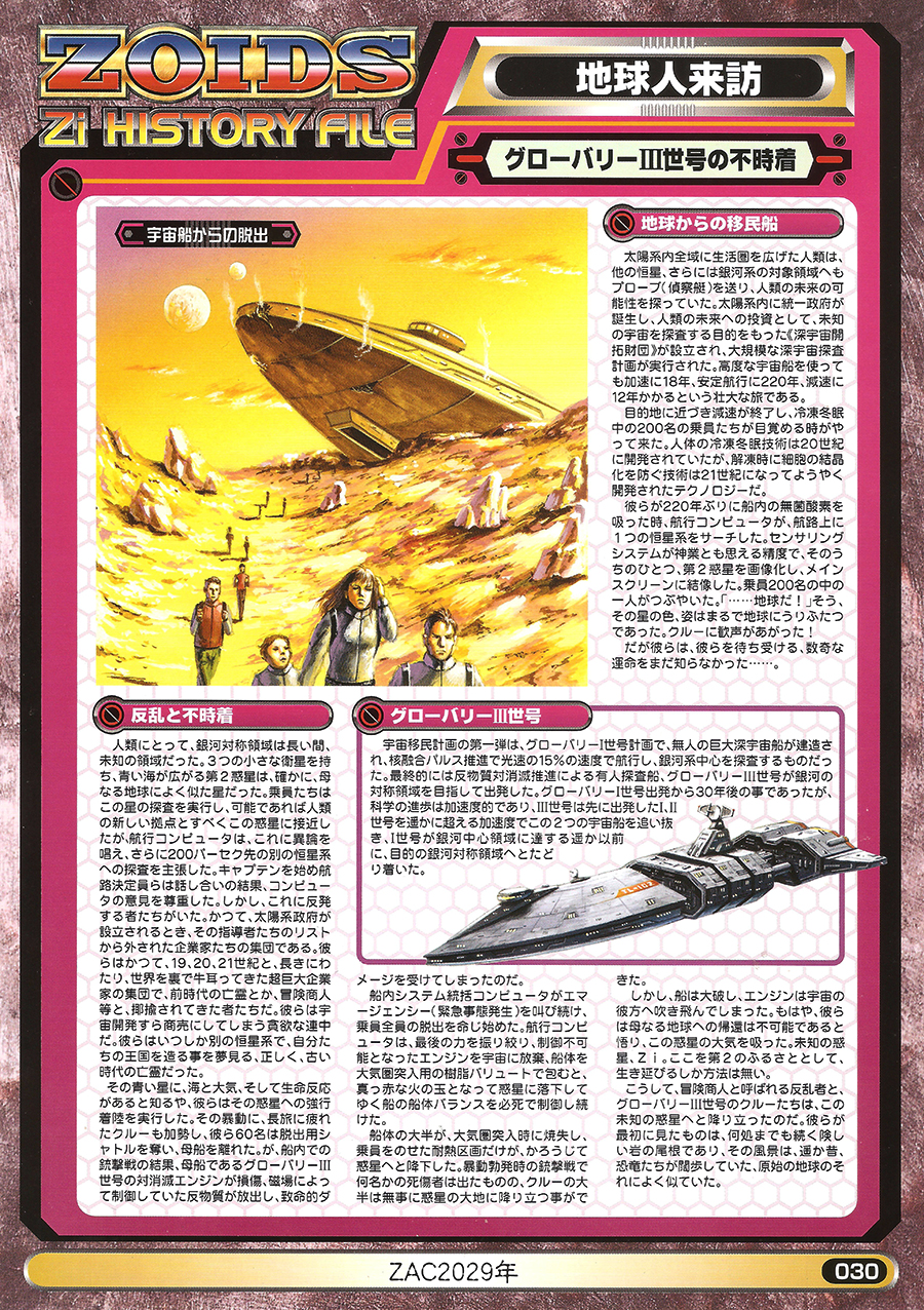 After some time, he eventually learned how the people of Zi thought. To the people of Zi, who had lived together with machine lifeforms for millennia, unrefined weapons such as fighter jets, tanks and intercontinental ballistic missiles did not suit their "aesthetics". Zi's people wished for the progress of weapons using the machine lifeforms Zoids, the way things had been until now.
