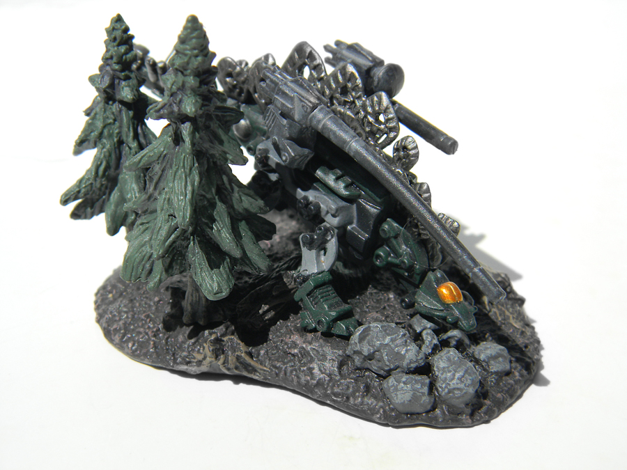 You wouldn't think this would be much of a change, since the original figure is in such muted colors. The greyscale actually works great to accentuate details that otherwise would've gone unnoticed, such as all of the caps along the side and the weapon details. The base, as usual, is a darker and browner shade than the rest of the figure.