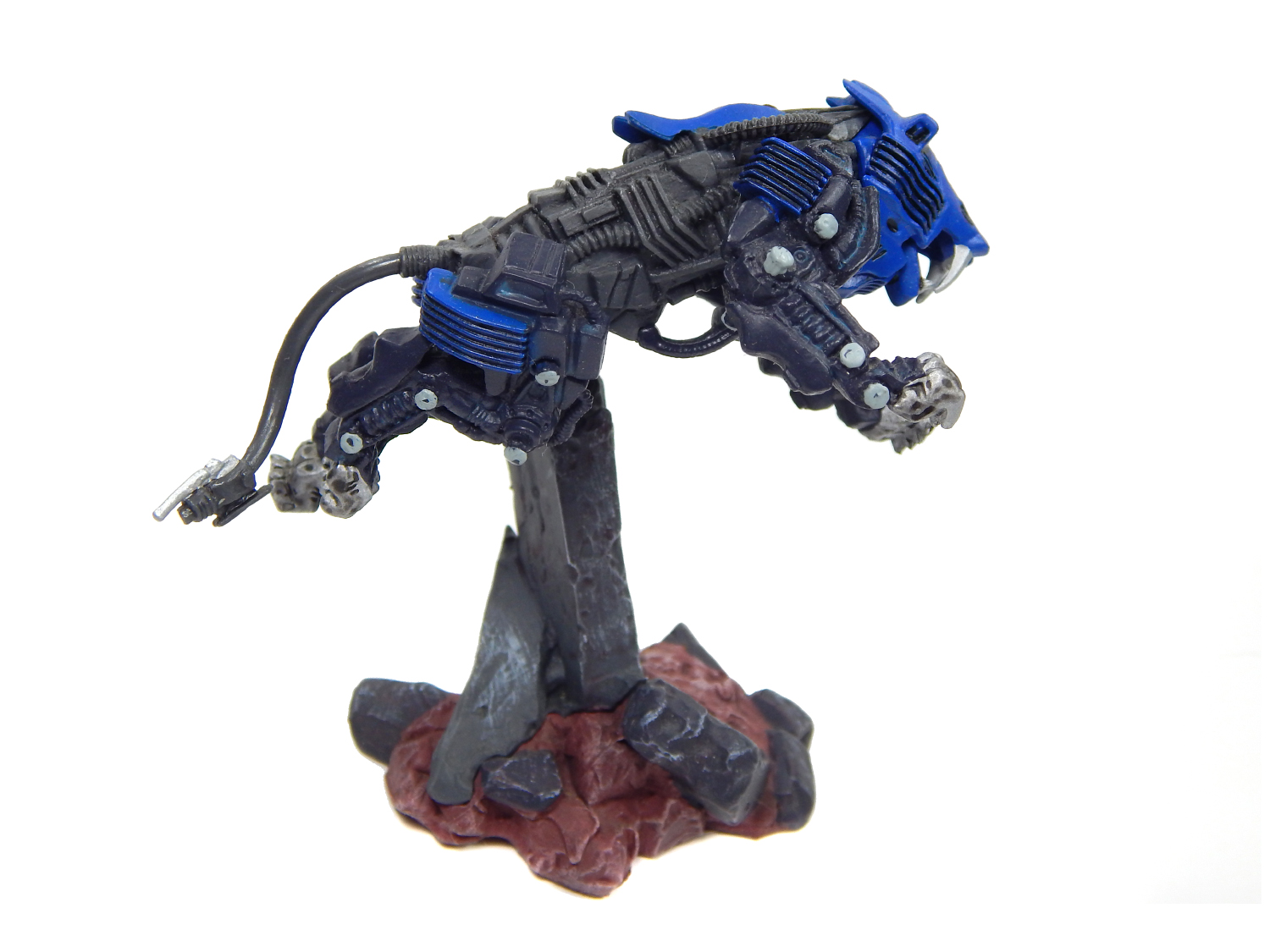 Saber Tiger, befittingly, has one of the most aggressive art statue poses. The Zoid is depicted ripping cables out of the chest of its fallen Command Wolf victim, which is scattered across the floor. Obviously this Zoid is already done for, but the Saber Tiger going so much further to 'devour' the competition is such a fun detail. It's also interesting that the eyes are blue instead of green.