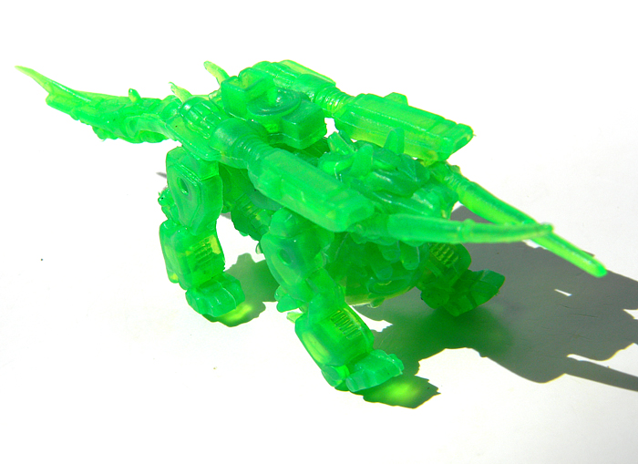 This series is made up of small, gummy-texture Zoids cast in transparent colors. It's assumed to be chinese bootlegs but consists of two sets, one in boxes and one in small booster packs. As far as I can tell the boxes have pre-determined contents but I am not sure if the boosters are the same, or random. They might be the ones on the package (in plain colors, not the horrible box colors-)