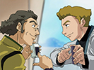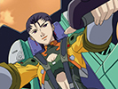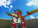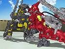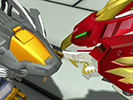 The other three Zi-Fighters are introduced as Rotten Roger and his Geno Saurer the Archangel of Destruction, Gilbert the Impaler and his Red Horn, and Sarah Slam and her Raynos. They are instructed by Rastani to gang up on RD. He wants the Liger Zero Phoenix to be destroyed.